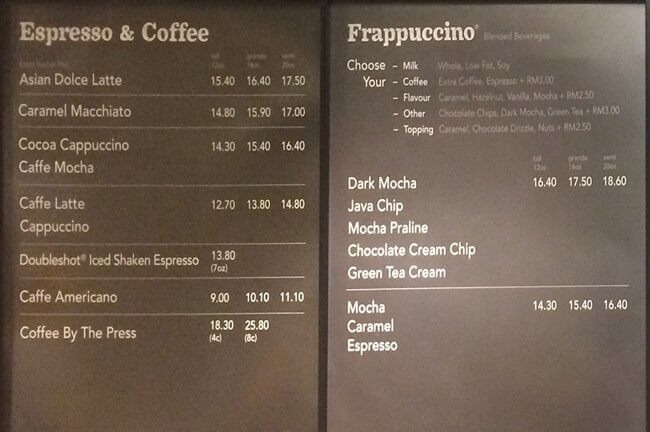 Cùng nhìn lại menu “kinh điển” của Starbucks: