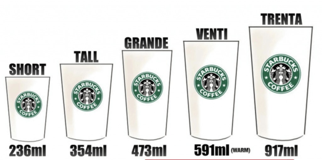 Quay lại Starbucks, cho đến những năm 1990, Starbucks thường có 3 kích cỡ: Short, Tall và Grande, và cũng không quá bất ngờ khi Tall là sự lựa chọn phổ biến nhất.