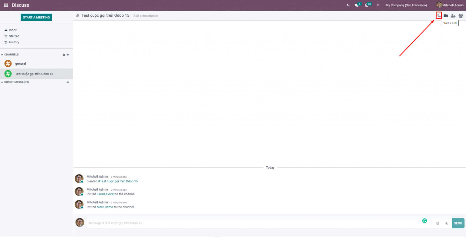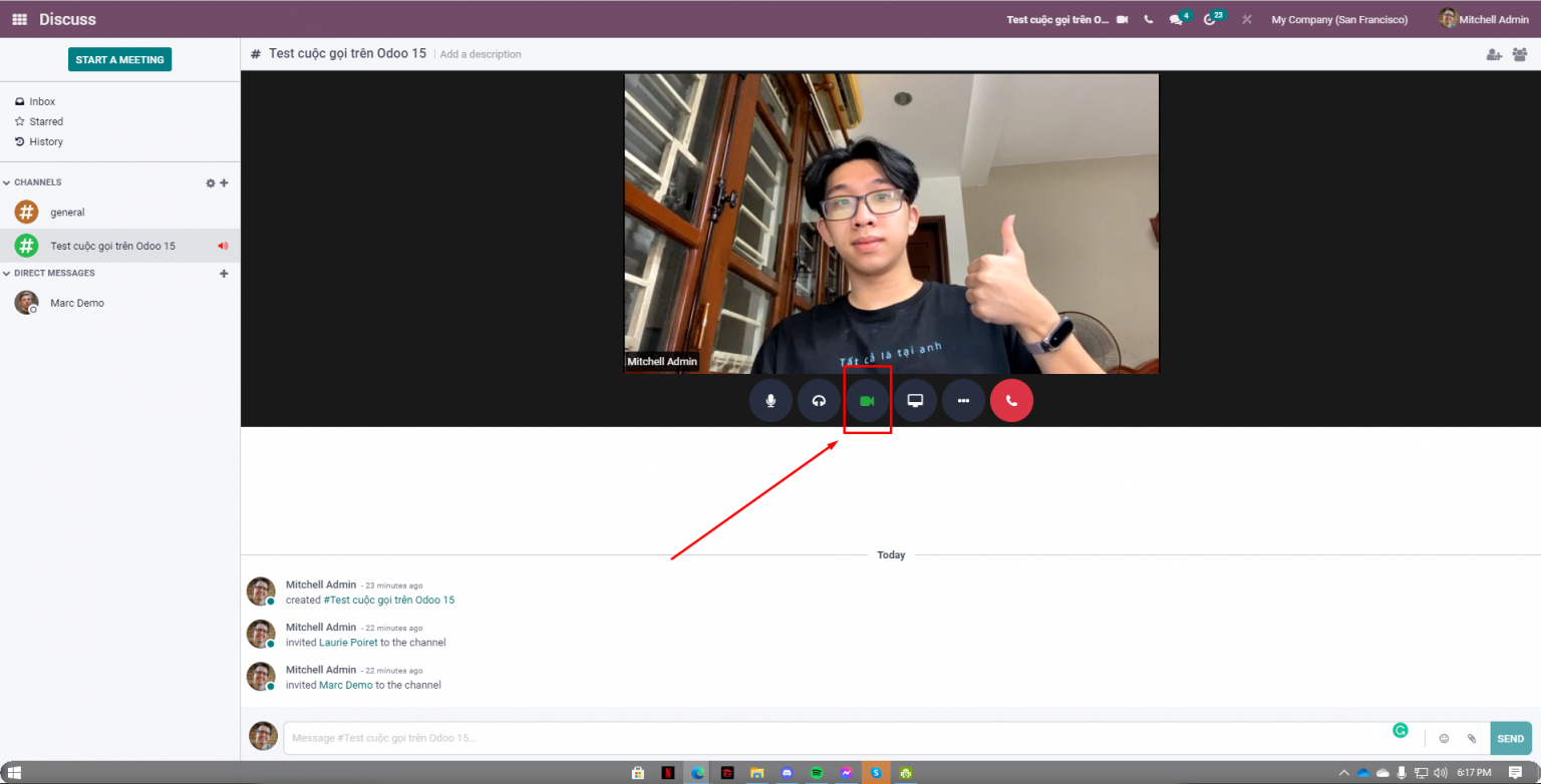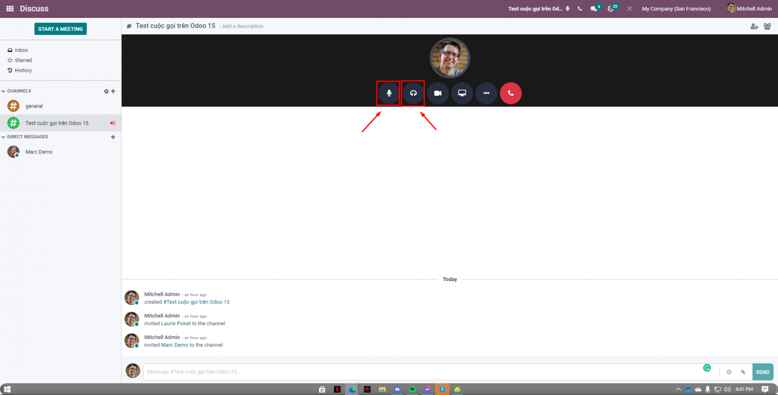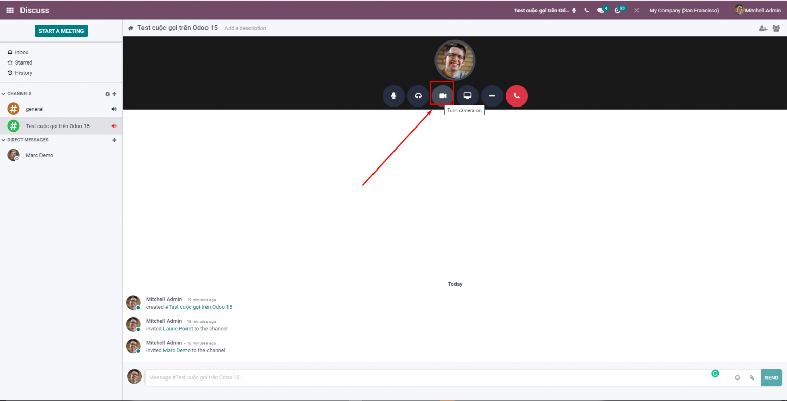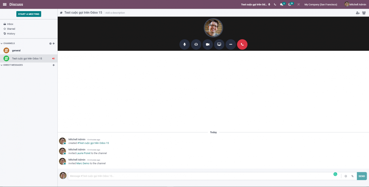 Giao diện khi tham gia cuộc gọi trên Odoo 15 Discuss