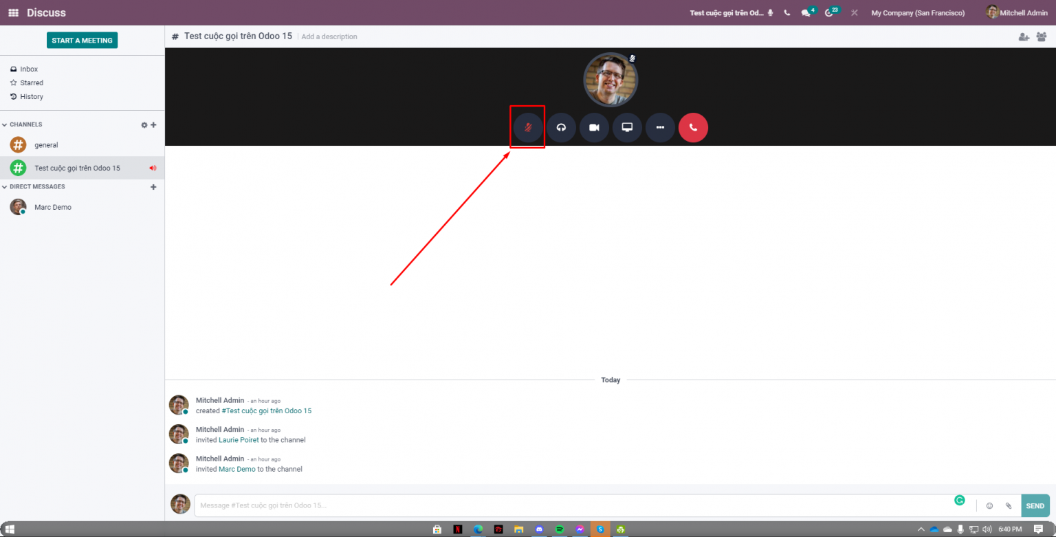 Đây chính là tính năng cuối cùng được cập nhật trong module Odoo 15 Discuss. Tính năng này hỗ trợ sự riêng tư khi họp trực tuyến từ xa. Khi làm việc tại nhà, bạn sẽ không tránh khỏi những tiếng ồn từ bên ngoài và những tiếng ồn này sẽ ảnh hưởng đến cuộc họp. Vì vậy, tính năng tắt micro và âm thanh sẽ giúp bạn giải quyết vấn đề đó.