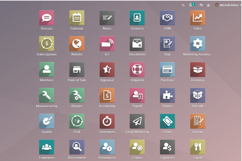 Để xây dựng một chiến lược ERP phù hợp, chúng tôi xin lấy phần mềm ERP – Odoo làm ví dụ. Lí do là bởi đây là một phần mềm quản lý doanh nghiệp phổ biến và thông dụng nhất trên thế giới hiện nay. Ngoài ra, Odoo sở hữu nhiều module của từng phòng ban khác nhau và có khả năng bổ sung thêm các tính năng khác nếu doanh nghiệp bạn có đội ngũ lập trình đầy đủ kiến thức. Ví dụ như Marketing, bán hàng, nhân sự, sản xuất,… tất cả các phòng ban đều được liên kết với nhau trên Odoo.
