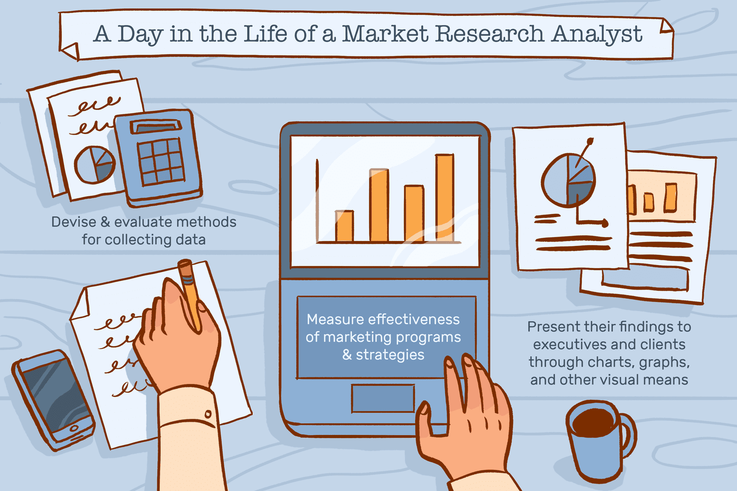 Research analysts tiến hành các nghiên cứu về marketing để giúp các công ty nhắm mục tiêu khách hàng mới, tăng doanh số và xác định tiềm năng bán hàng của sản phẩm mới. Sự tăng trưởng của thương mại điện tử là cú thúc đẩy sự tăng trưởng trong lĩnh vực này. CareerOneStop projects hiển thị mức tăng trưởng 18 % khi xét đến cơ hội việc làm vào năm 2029. Mức lương trung bình của Mỹ cho công việc áp dụng data mining này là $65,810 (trung bình với mức lương ở khu vực New York/New Jersey đạt $81,270).