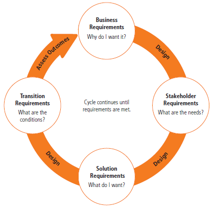 Công việc của người BA thường xoay quanh vòng tròn bên dưới.