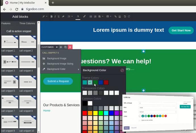 Tích hợp công cụ Web Builder Toolkit với các ứng dụng Bán Hàng, Giới thiệu sản phẩm, Hỗ trợ, Chăm sóc khách hàng...
